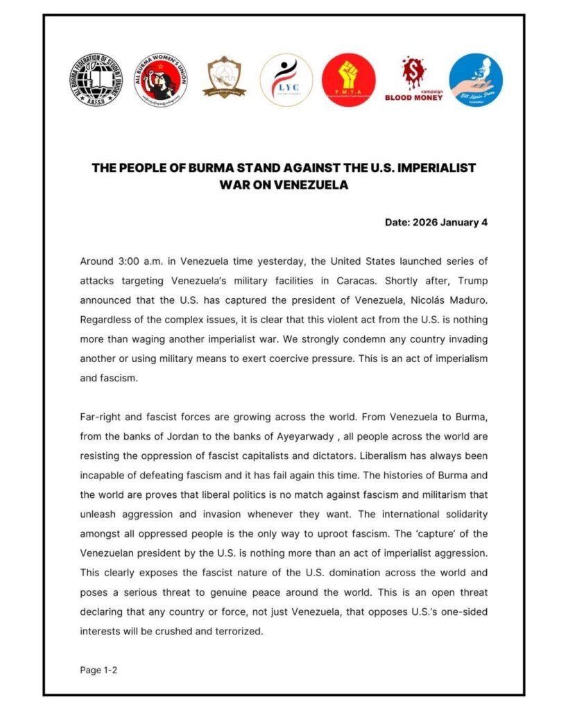 အမေရိကန်ရဲ့နယ်ချဲ့လုပ်ရပ်ကို ဆန့်ကျင်ရှုတ်ချကြောင်း