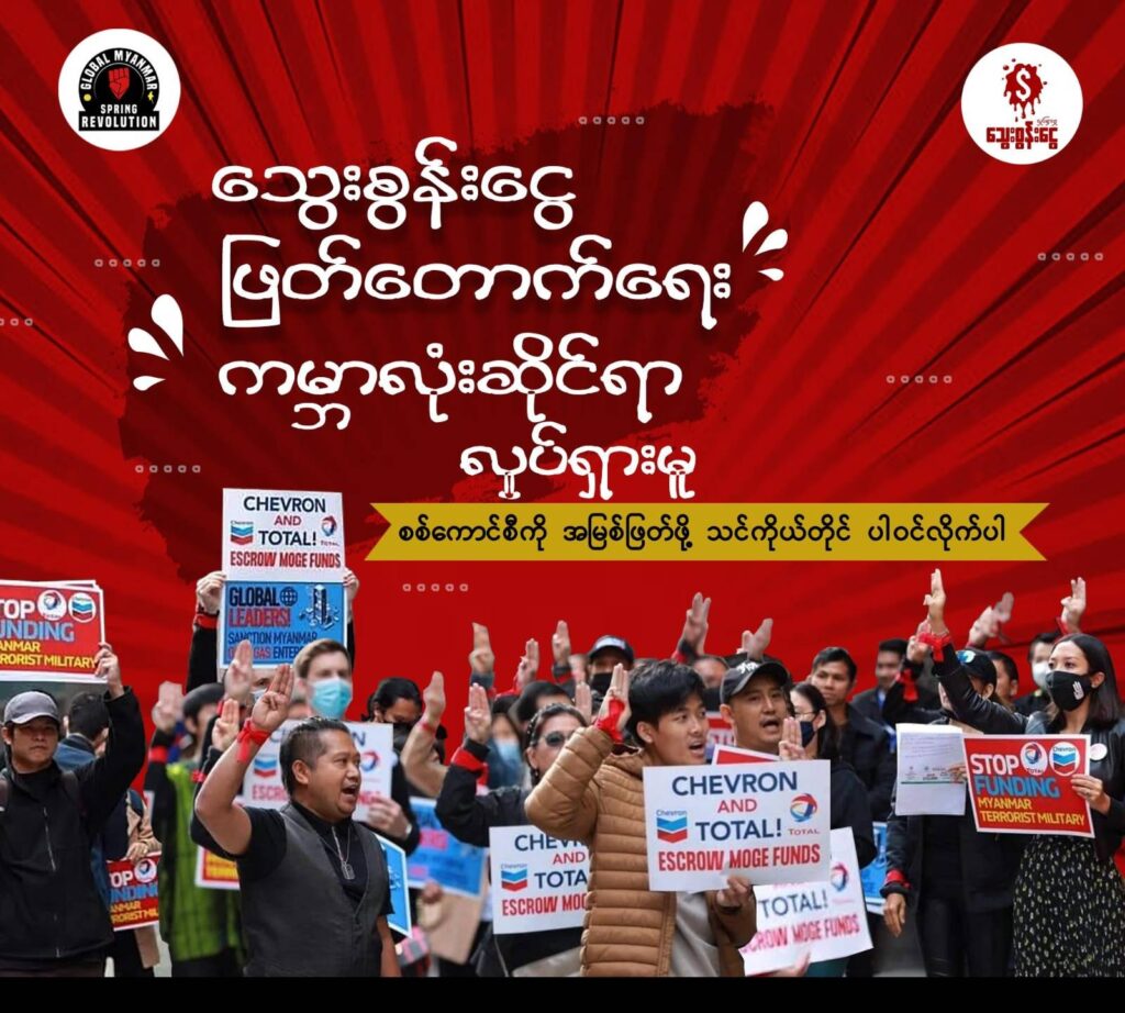 The military dictatorship in Myanmar shall be weakened by decreasing the primary revenue flows from the natural resource sector and saving more lives of the people in Myanmar by distracting the mechanism of the military’s atrocities.