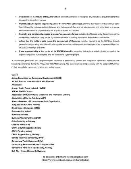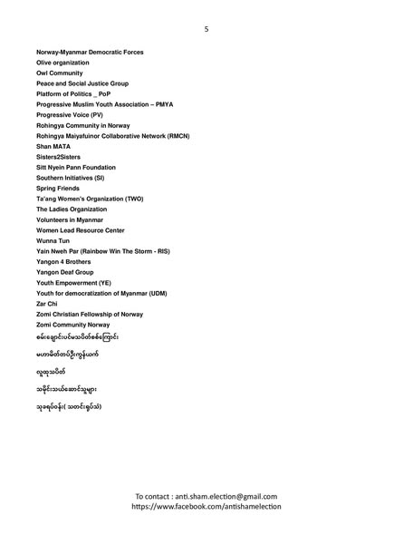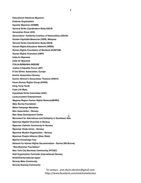 This statement is organized by the People Movement Platform (Myanmar) and is endorsed by 103 local and international organizations, including 6 organizations whose names are withheld for security reasons.